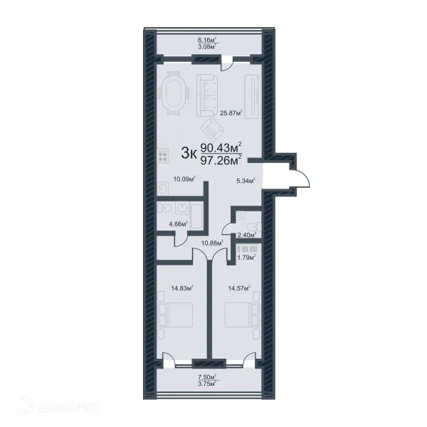 3 комн. квартира в Томске в ипотеку от 98 071 руб/месяц