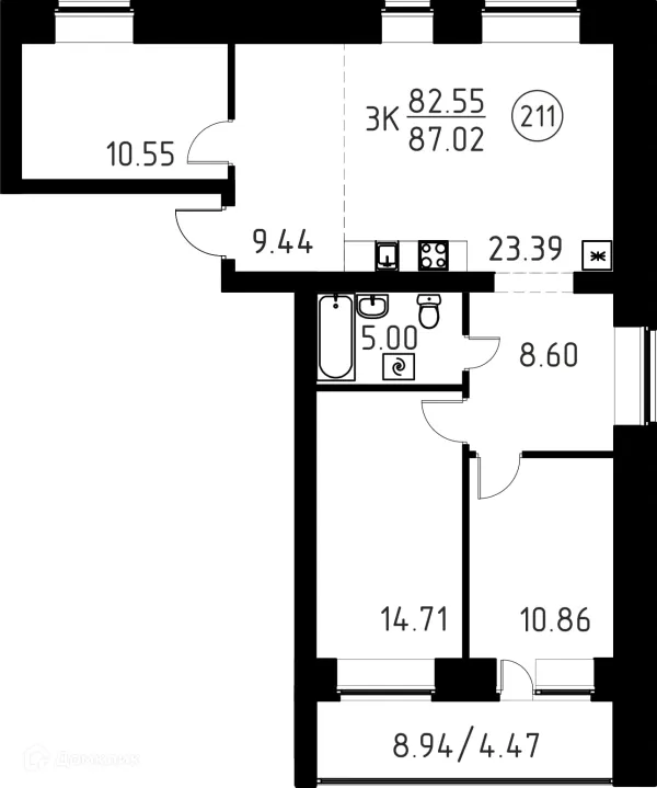 3 комн. квартира в Томске в ипотеку от 69 170 руб/месяц