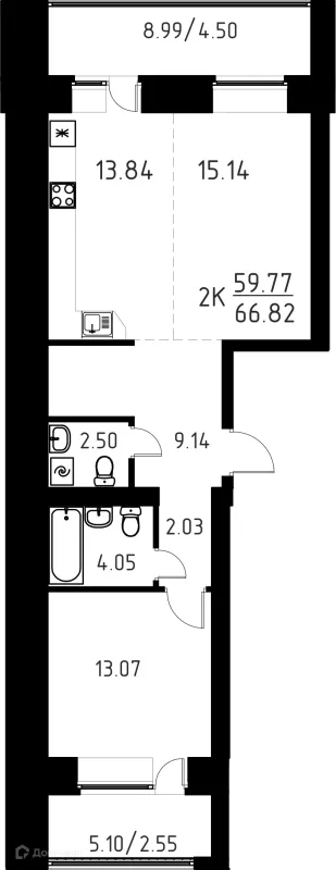 2 комн. квартира в Томске в ипотеку от 58 770 руб/месяц
