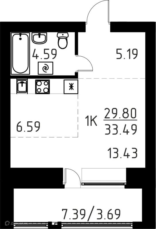 1 комн. квартира в Томске в ипотеку от 33 974 руб/месяц