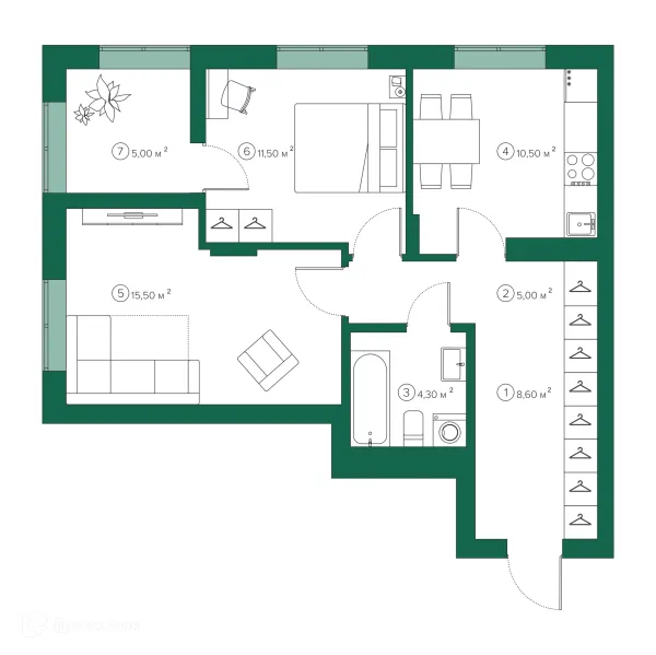 2 комн. квартира в Томске в ипотеку от 46 579 руб/месяц