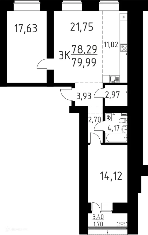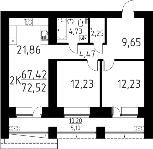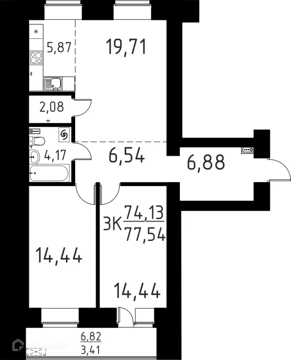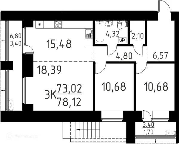 3 комн. квартира в Томске в ипотеку от 72 104 руб/месяц