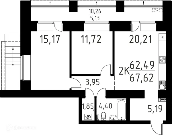2 комн. квартира в Томске в ипотеку от 61 099 руб/месяц