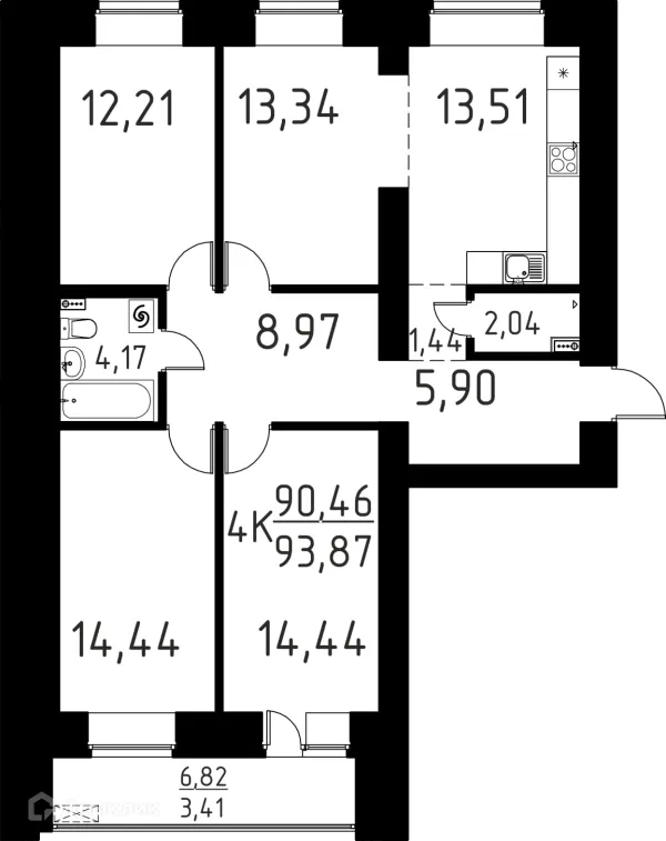 4 комн. квартира в Томске в ипотеку от 77 735 руб/месяц