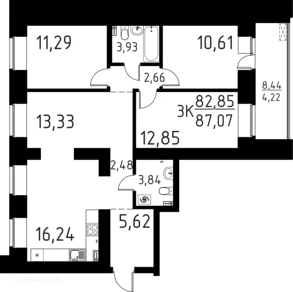 3 комн. квартира в Томске в ипотеку от 63 095 руб/месяц