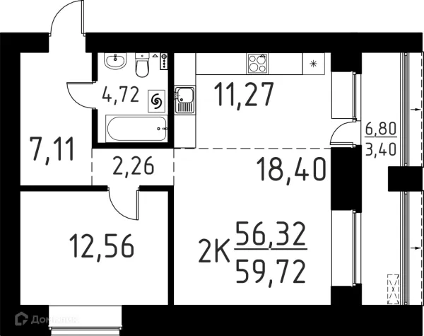 2 комн. квартира в Томске в ипотеку от 50 584 руб/месяц