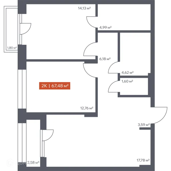 2 комн. квартира в Томске в ипотеку от 76 912 руб/месяц