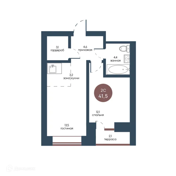 2 комн. квартира в Томске в ипотеку от 76 396 руб/месяц