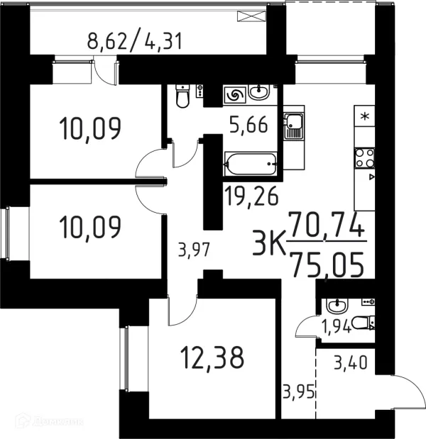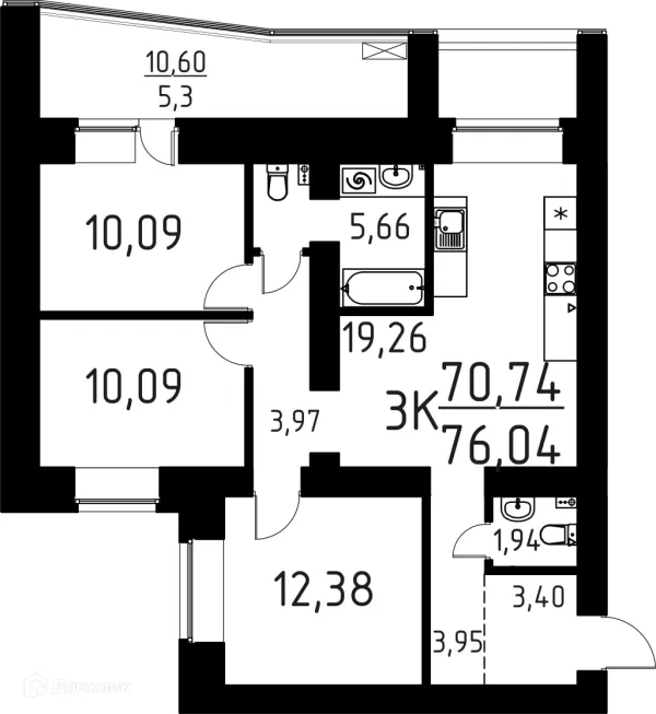 3 комн. квартира в Томске в ипотеку от 97 278 руб/месяц