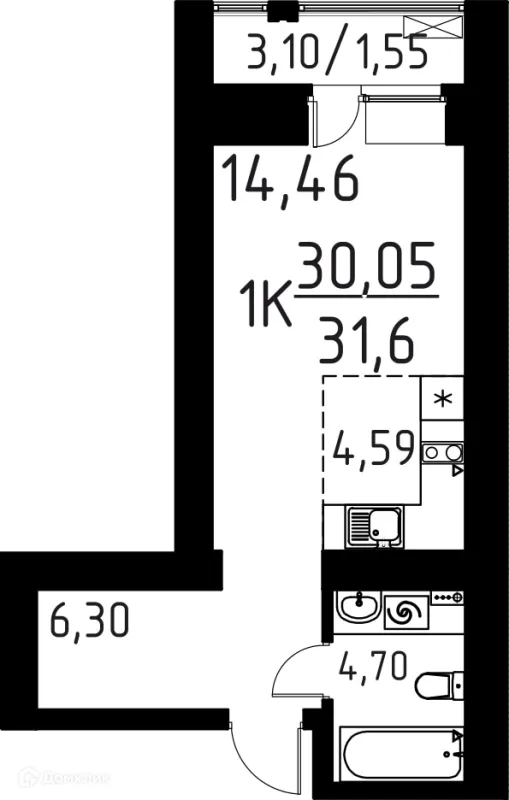 1 комн. квартира в Томске в ипотеку от 46 420 руб/месяц