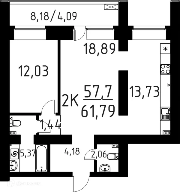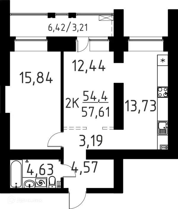 2 комн. квартира в Томске в ипотеку от 80 057 руб/месяц