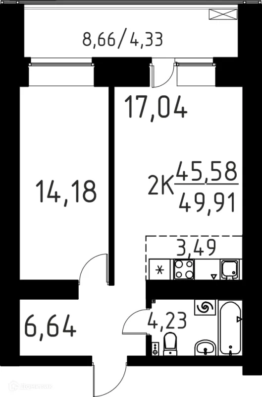 1 комн. квартира в Томске в ипотеку от 45 763 руб/месяц
