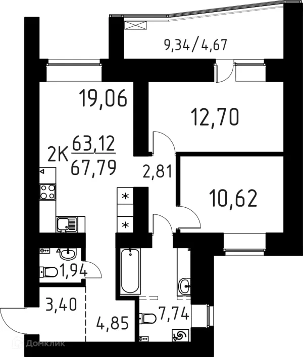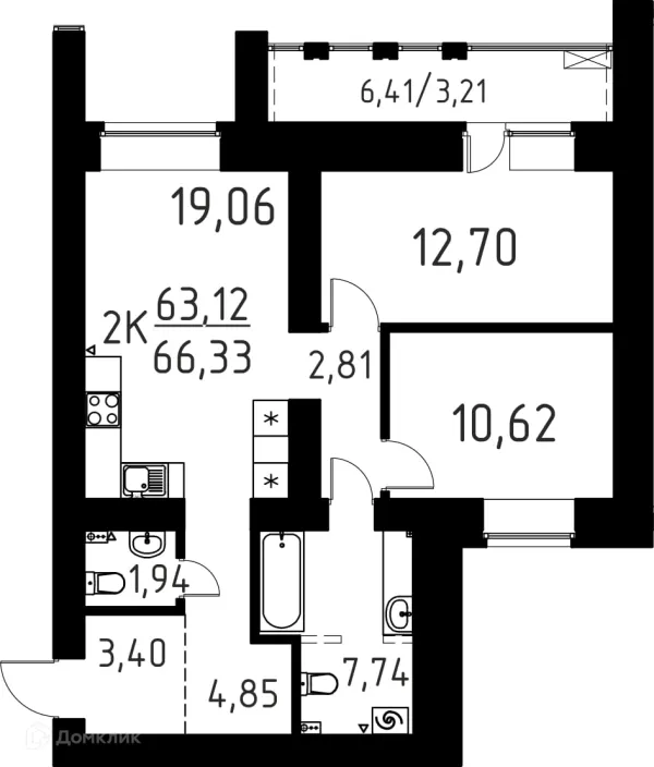 2 комн. квартира в Томске в ипотеку от 76 531 руб/месяц