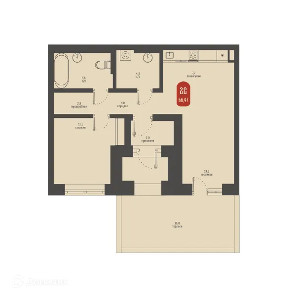 2 комн. квартира в Томске в ипотеку от 78 533 руб/месяц