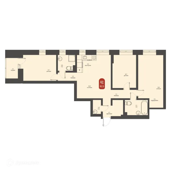 4 комн. квартира в Томске в ипотеку от 105 638 руб/месяц