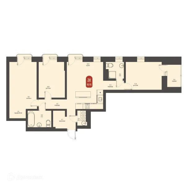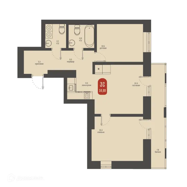 3 комн. квартира в Томске в ипотеку от 89 980 руб/месяц