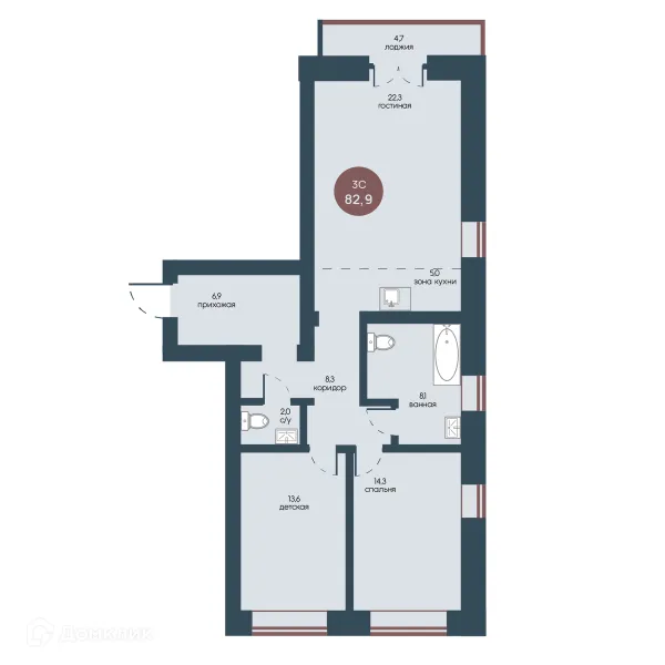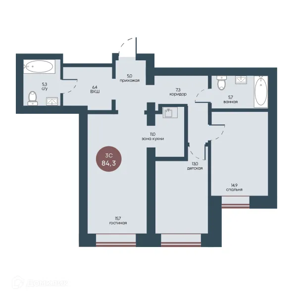 3 комн. квартира в Томске в ипотеку от 93 999 руб/месяц