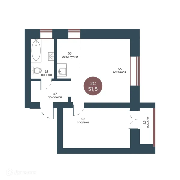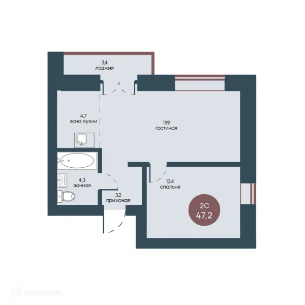 2 комн. квартира в Томске в ипотеку от 75 641 руб/месяц