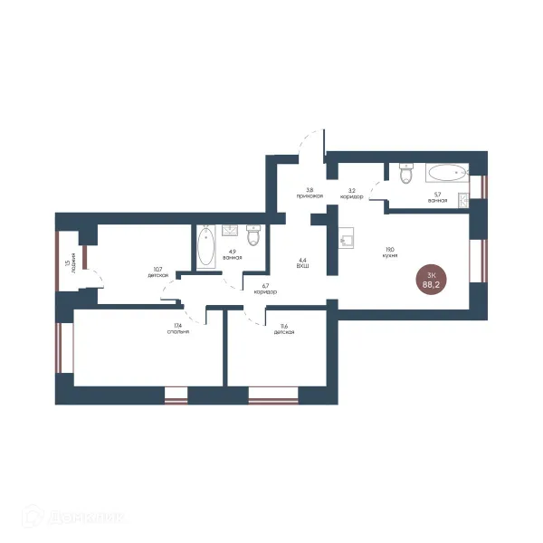3 комн. квартира в Томске в ипотеку от 88 350 руб/месяц