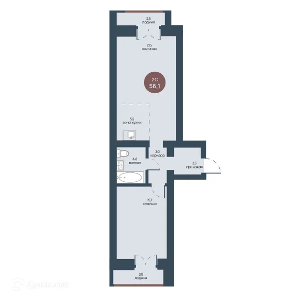 2 комн. квартира в Томске в ипотеку от 61 502 руб/месяц