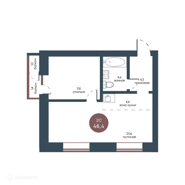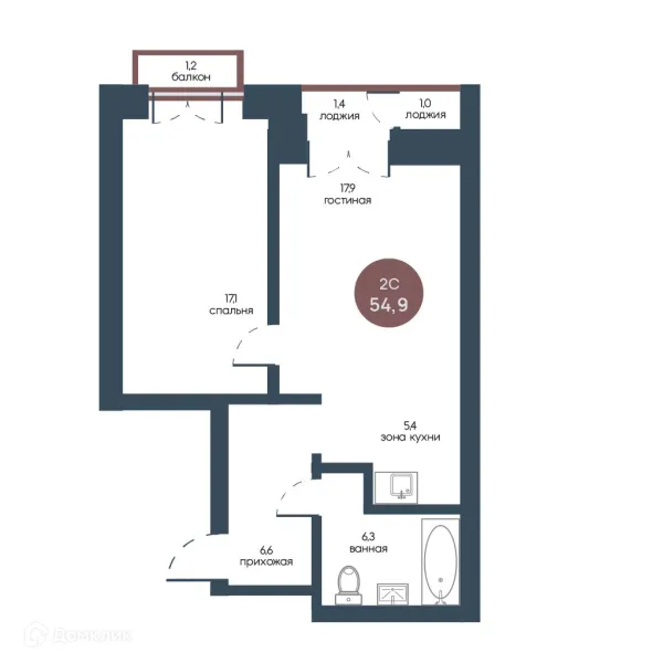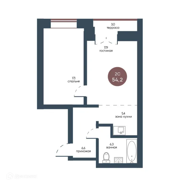 2 комн. квартира в Томске в ипотеку от 74 826 руб/месяц