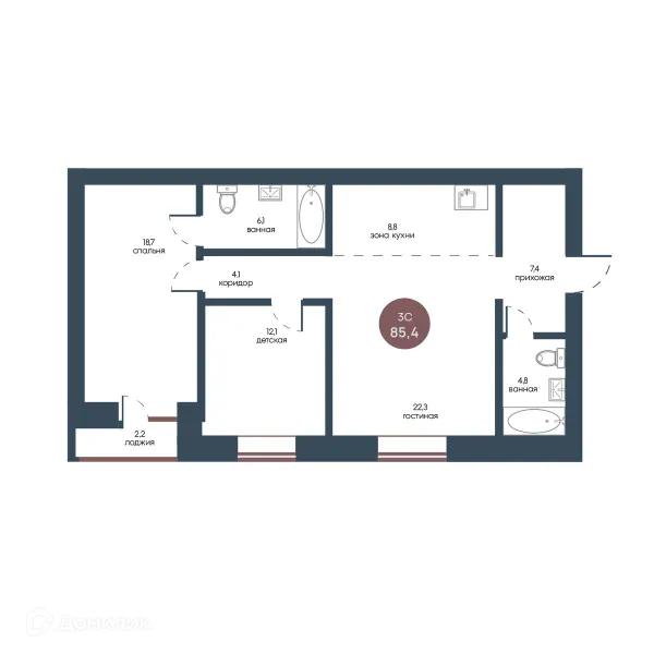 3 комн. квартира в Томске в ипотеку от 100 006 руб/месяц