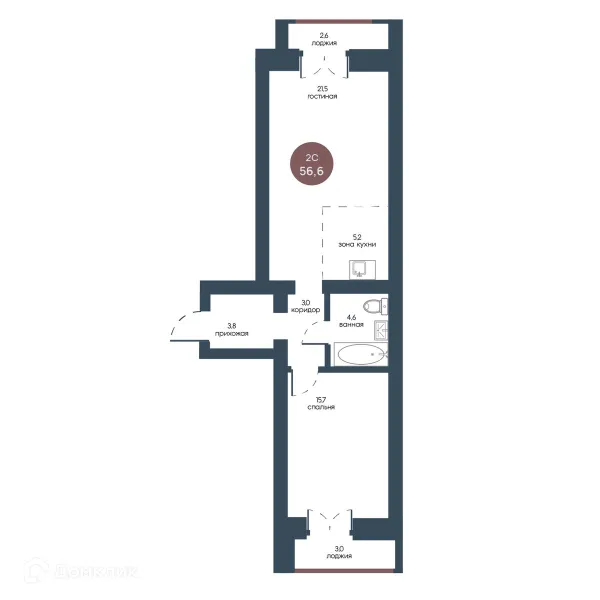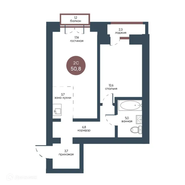 2 комн. квартира в Томске в ипотеку от 58 302 руб/месяц