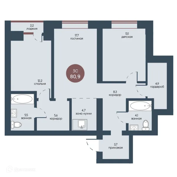 3 комн. квартира в Томске в ипотеку от 83 943 руб/месяц
