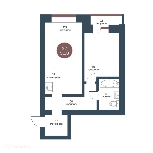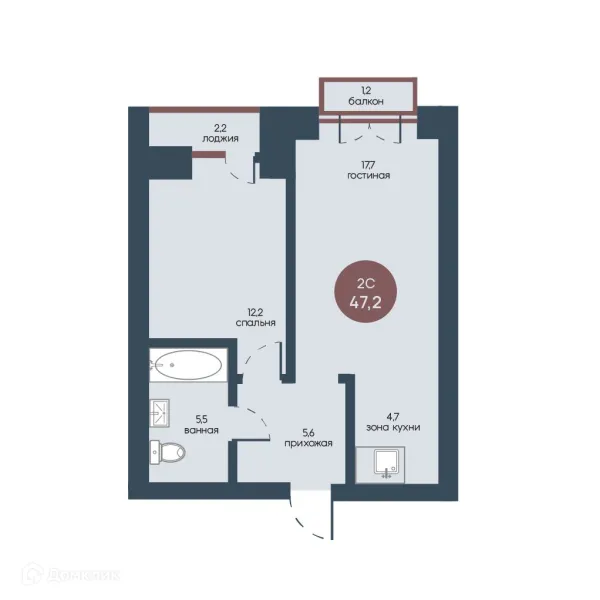 2 комн. квартира в Томске в ипотеку от 75 173 руб/месяц
