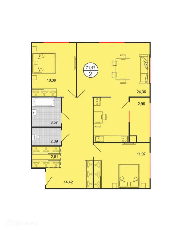 2 комн. квартира в Ставрополе в ипотеку от 44 155 руб/месяц