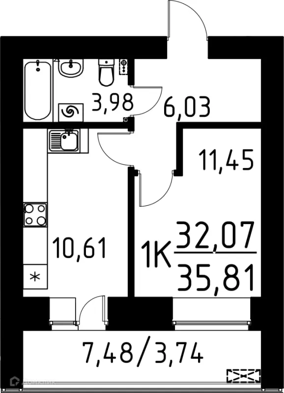1 комн. квартира в Томске в ипотеку от 48 479 руб/месяц