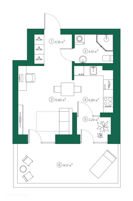 1 комн. квартира в Томске в ипотеку от 46 991 руб/месяц