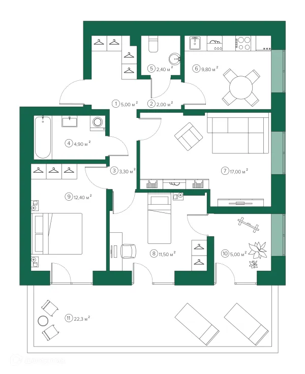 3 комн. квартира в Томске в ипотеку от 89 612 руб/месяц