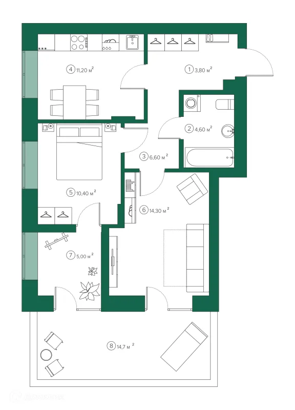 2 комн. квартира в Томске в ипотеку от 71 300 руб/месяц