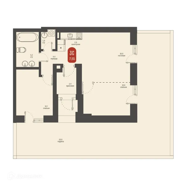 3 комн. квартира в Томске в ипотеку от 61 863 руб/месяц
