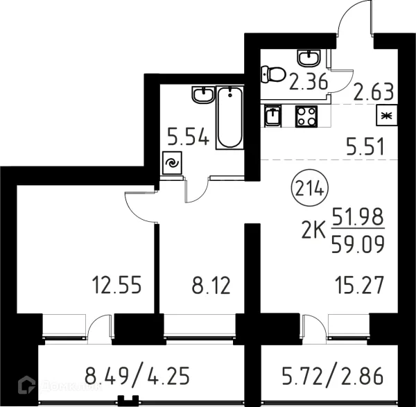 2 комн. квартира в Томске в ипотеку от 51 364 руб/месяц