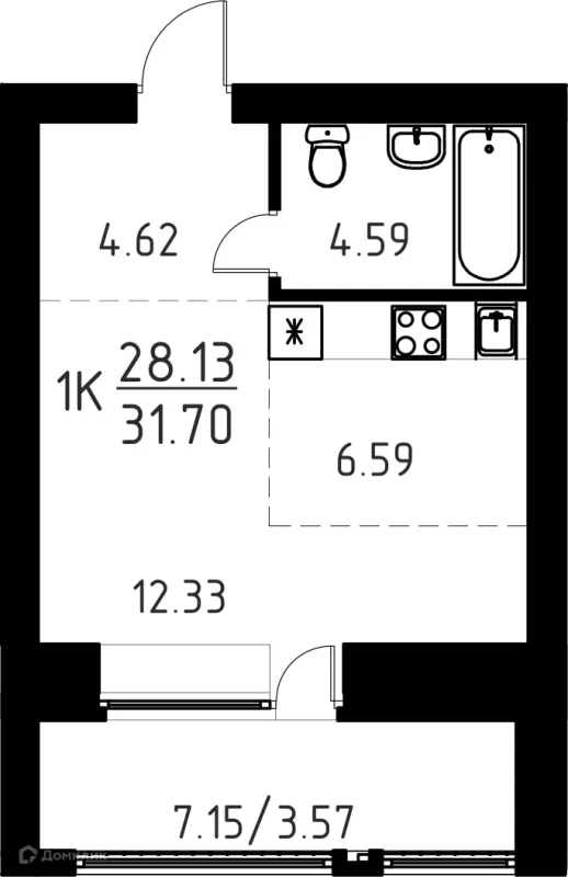 1 комн. квартира в Томске в ипотеку от 32 721 руб/месяц