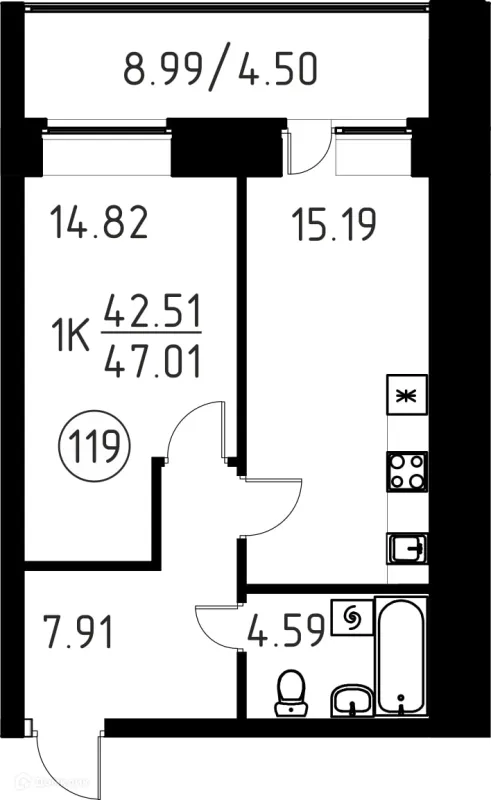 1 комн. квартира в Томске в ипотеку от 44 960 руб/месяц