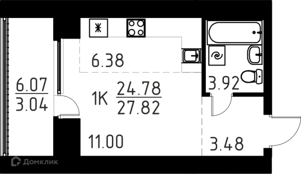 1 комн. квартира в Томске в ипотеку от 38 838 руб/месяц