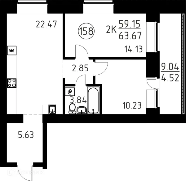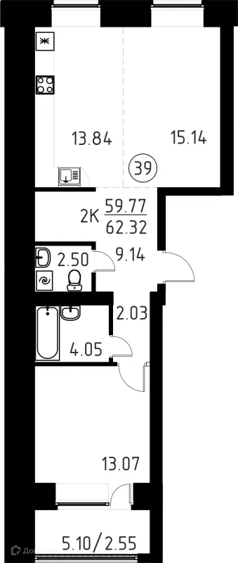 2 комн. квартира в Томске в ипотеку от 57 147 руб/месяц
