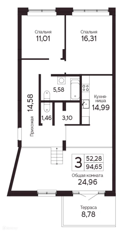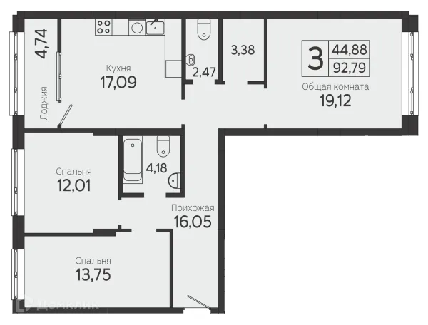 3 комн. квартира в Томске в ипотеку от 94 772 руб/месяц