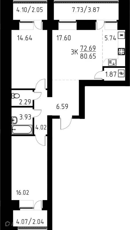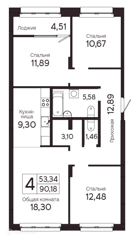 4 комн. квартира в Томске в ипотеку от 90 300 руб/месяц