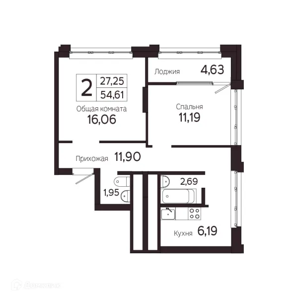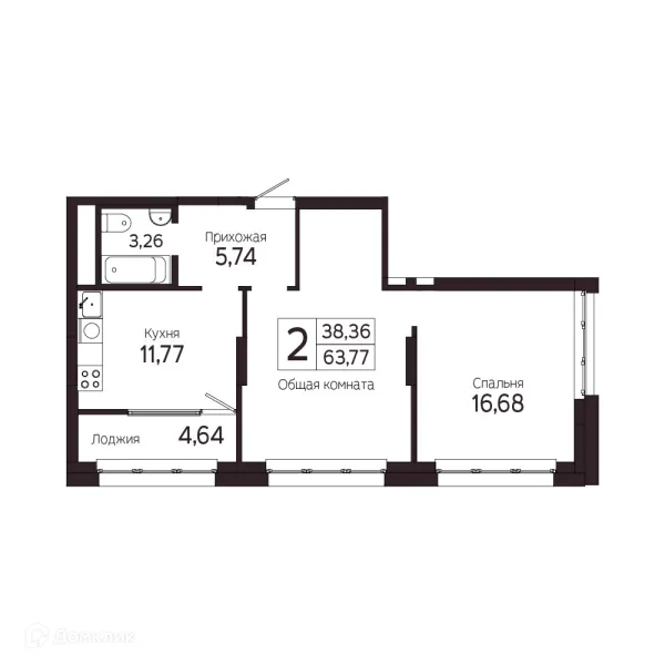 2 комн. квартира в Томске в ипотеку от 59 933 руб/месяц