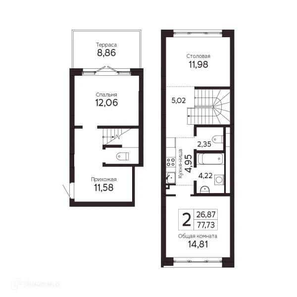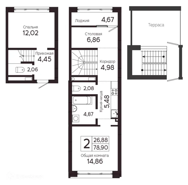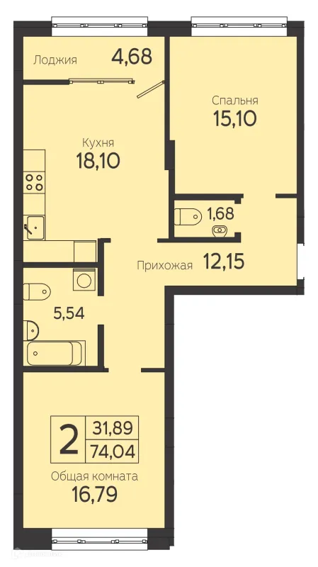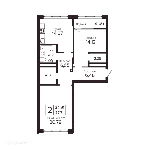 2 комн. квартира в Томске в ипотеку от 77 979 руб/месяц