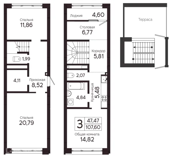 3 комн. квартира в Томске в ипотеку от 107 741 руб/месяц