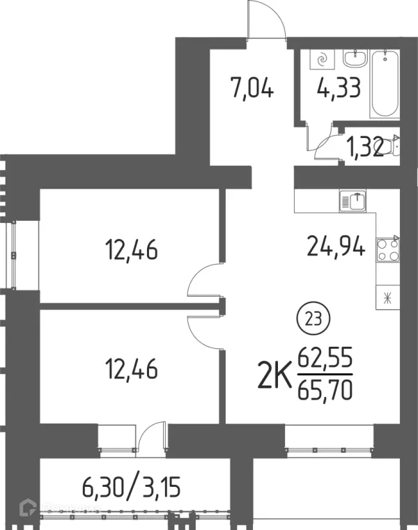 2 комн. квартира в Томске в ипотеку от 60 695 руб/месяц