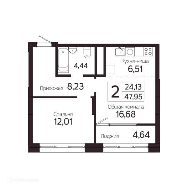 2 комн. квартира в Томске в ипотеку от 62 555 руб/месяц