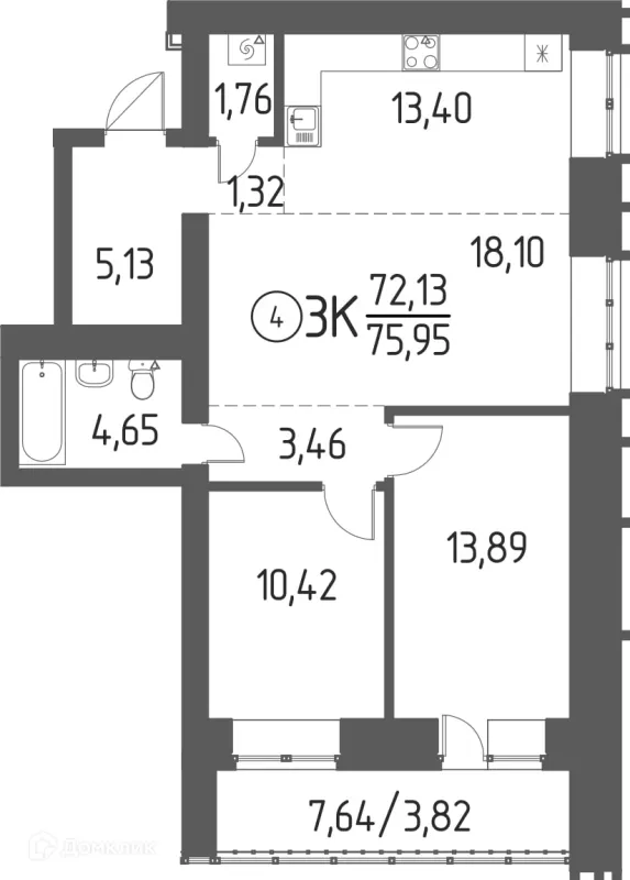 3 комн. квартира в Томске в ипотеку от 68 409 руб/месяц