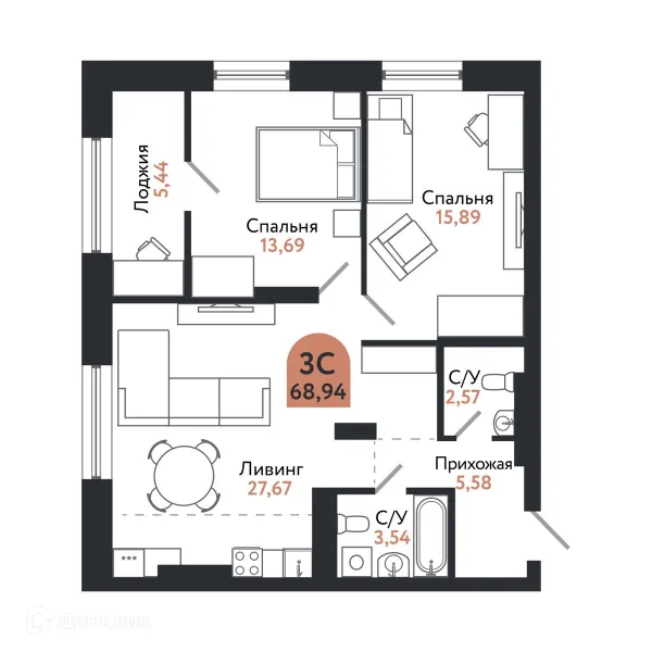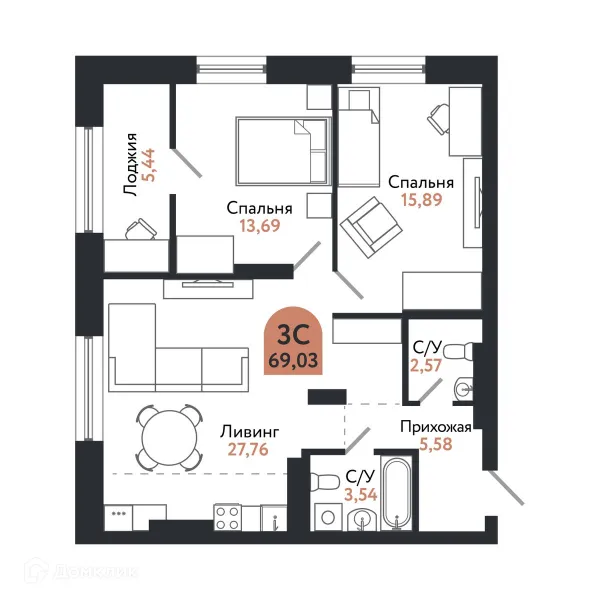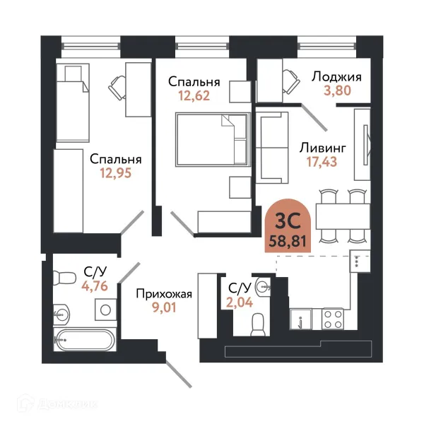 3 комн. квартира в Томске в ипотеку от 73 579 руб/месяц