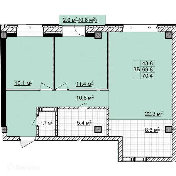 3 комн. квартира в Томске в ипотеку от 66 839 руб/месяц